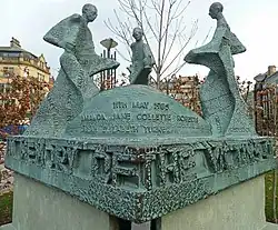 More than £3.5 million (£13.4 million today) was raised for victims of the fire and their families through the Bradford Disaster Appeal Fund.[27] Memorials have been erected at the ground and at Bradford City Hall, the latter of which was provided by Bradford's twin town of Hamm, Germany.[65] The disaster is also marked by an annual remembrance ceremony on 11 May at Bradford City Hall,[68] and an annual Easter-weekend youth tournament, which is contested between Bradford, Lincoln and other European teams.[69]