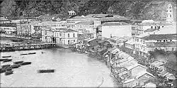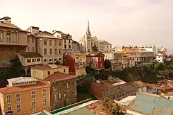 During Spanish colonial times, Valparaíso remained a small village, with only a few houses and a church. On some occasions she was attacked by English pirates and privateers, such as Francis Drake with his ship Golden Hind in 1578[13] and later his cousin Richard Hawkins with his ship Dainty in 1594. Drake's sack of Valparaíso gave origin to the legend about Cueva del Pirata.[14]