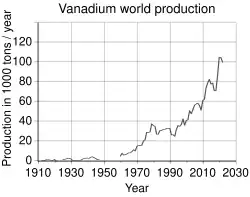 - ^ Polyak, Désirée E. "Mineral Commodity Summaries 2023: Vanadium" (PDF). United States Geological Survey. Archived (PDF) from the original on 7 February 2023. Retrieved 7 February 2023.