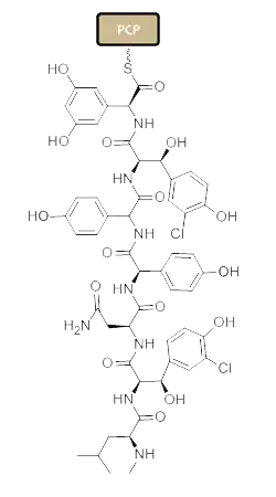 - ^ Schmartz PC, Zerbe K, Abou-Hadeed K, Robinson JA (August 2014). "Bis-chlorination of a hexapeptide-PCP conjugate by the halogenase involved in vancomycin biosynthesis" (PDF). Organic & Biomolecular Chemistry. 12 (30): 5574–7. doi:10.1039/C4OB00474D. PMID 24756572. Archived (PDF) from the original on 2 February 2024. Retrieved 2 February 2024.