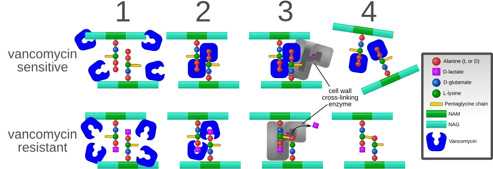 - ^ Pootoolal J, Neu J, Wright GD (2002). "Glycopeptide antibiotic resistance". Annual Review of Pharmacology and Toxicology. 42: 381–408. doi:10.1146/annurev.pharmtox.42.091601.142813. PMID 11807177.