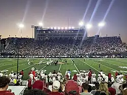 In April 2024, Vanderbilt University students joined other campuses[90] in support of Palestine by setting up an encampment on campus.[91] The protestors demanded that the university boycott companies that do business in Israel and demanded an end to what they call a Palestinian genocide.[92] The protests escalated when the administration blocked a student vote on a BDS resolution.[93][94] Students were forcibly removed by police from a building and three were arrested for misdemeanor assault, with those three students later expelled.[95] More than 170 faculty members opposed the university's response to the protests.[95] With the start of the 2024–25 academic year, Vanderbilt required all first-year undergraduate students to attend mandatory meetings about the university's approach to free speech[96]