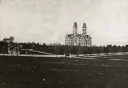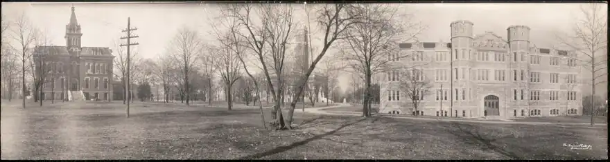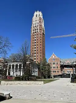 In 1905, Main Building (Kirkland Hall), which originally had two Victorian towers, burnt down and was rebuilt in an Italianate design with a single 170-foot tower after the university received donations totaling over $50,000.[28] There is speculation that the school initially intended to rebuild both towers of the original Kirkland Hall but lacked the funds to do so.[24]