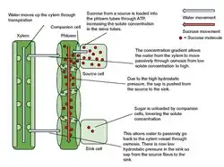 In leaves, the vascular bundles are located among the spongy mesophyll. The xylem is oriented toward the adaxial surface of the leaf (usually the upper side), and phloem is oriented toward the abaxial surface of the leaf. This is why aphids are typically found on the undersides of the leaves rather than on the top, since the phloem transports sugars manufactured by the plant and they are closer to the lower surface.