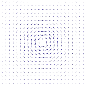 Example: The vector field describes a counterclockwise rotation around the origin in . To show that the function is rotationally invariant, compute: