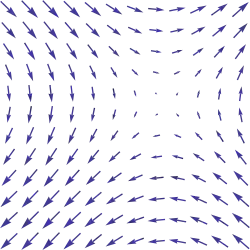 In vector calculus and physics, a vector field is an assignment of a vector to each point in a space, most commonly Euclidean space .[1] A vector field on a plane can be visualized as a collection of arrows with given magnitudes and directions, each attached to a point on the plane. Vector fields are often used to model, for example, the speed and direction of a moving fluid throughout three dimensional space, such as the wind, or the strength and direction of some force, such as the magnetic or gravitational force, as it changes from one point to another point.