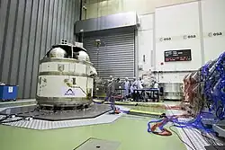 In March 2003, contracts for development of the Vega launcher were signed by European Space Agency (ESA) and Centre national d'études spatiales (CNES), the French space agency; Italy provided 65% of funding while six additional nations contributed the remainder.[28] In May 2004, it was reported that a contract was signed between commercial operator Arianespace and prime contractor ELV to perform vehicle integration at Kourou, French Guiana.[29] In November 2004, construction commenced upon a new dedicated launch pad for the Vega launcher at Kourou, this included a bunker and a self-propelled structure to assist assembly of the stages; this site was built over the original launch pad for the retired Ariane 1 launcher.[30][31] In September 2005, the successful completion of key tests on the Vega's solid rocket motor igniters, a key milestone, was reported.[32]
