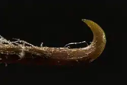 Tiny hooks can be seen covering the surface of this bur. The design of hook-and-loop imitated this natural mechanism for seed dispersion.