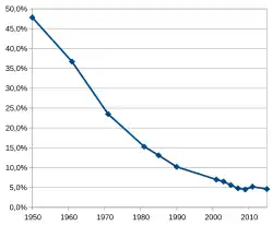 Venezuela's illiteracy rate, based on data from UNESCO[396][397] and the Instituto Nacional de Estadística (INE) of Venezuela[398]