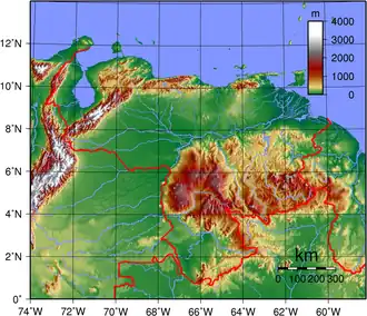 A topographic map of Venezuela