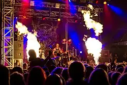 Venom are an English heavy metal band formed in Newcastle upon Tyne in 1978. Coming to prominence towards the end of the new wave of British heavy metal (NWOBHM), Venom's first two albums, Welcome to Hell (1981) and Black Metal (1982), are considered major influences on black metal, thrash metal and extreme metal in general.[1] Their second album proved influential enough that its title was used as the name of the black metal genre; as a result, Venom were part of the first wave of the genre, along with Mercyful Fate and Bathory.[2][3]