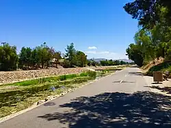 Other towns were being established in the county. A plan for Hueneme (later Port Hueneme) was recorded in 1874, and Santa Paula's plan was recorded in 1875. Along the banks of the Santa Clara River, the township of New Jerusalem (which would eventually be named El Rio) was founded in 1875 by the owner of general store named Simon Cohen who became its first postmaster and banker in 1882.[41] The community of Nordhoff (later renamed Ojai) was started in 1874.[42] Bardsdale, Fillmore, Piru, and Montalvo were established in 1887.[43] 1892 saw Simi (later Simi Valley), Somis, Saticoy, and Moorpark. Oxnard was a latecomer, not being established until 1898.[44]