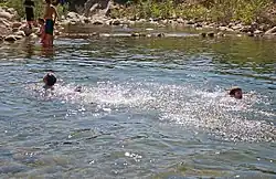 Several place names in the county have originated from Chumash, including Ojai, which means moon,[24] and Simi Valley, which originates from the word Shimiyi and refers to the stringy, thread-like clouds that typify the region.[25] Others include Point Mugu from the word Muwu (meaning "beach"), Saticoy from the word Sa'aqtiko'y (meaning "sheltered for the wind"), and Sespe Creek from the word S'eqp'e (meaning "kneecap").[26]