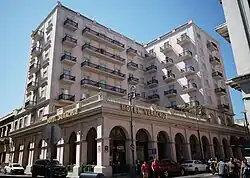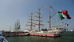 The Port of Veracruz is the oldest and largest port in Mexico, deeply important to its history.[5][6][7] During the colonial period, it was the most important port in New Spain, the connection to ports and the Atlantic trade creating a large wealthy merchant class, which was more prosperous than that of Mexico City.[8] From the port of Veracruz were exported turkeys, corn, beans, avocados, and cotton to Spain. From Spain came fava beans, wheat, rice, cattle, pigs, fabric, wine and other goods. In the mid 16th century, so much gold and silver was found in Veracruz that these precious metals were the chief export to Spain on what were called treasure ships commonly known as Spanish treasure fleet. The bounty attracted pirates, mostly from Britain and Holland, such as Francis Drake and John Hawkins, who preyed on such ships.[8] Veracruz was invaded during conflicts with France and the United States.[5]