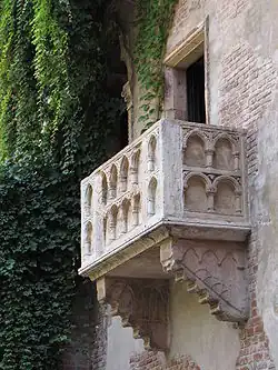 Three of William Shakespeare's plays (Romeo and Juliet, The Taming of the Shrew and The Two Gentlemen of Verona) are set in the city of Verona.[44][45] It is unknown whether Shakespeare ever visited the city. Some areas around the city are named in reference to the play, like the House of Juliet, the Grave of Juliet, the House of Romeo and the Tomb of Romeo. In May 2024, Pope Francis regarded Verona as the city of love.[46]