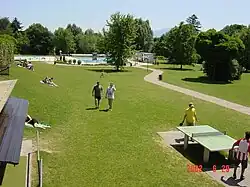 There is one sports center in Versoix, La Bécassière. It contains two pools, soccer fields, basketball courts and a beach-volleyball court. The pool in Versoix consists of two outdoor pools, a snack-bar, a restaurant with a terrace and a playground.
