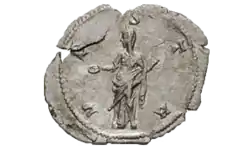 In Roman belief, Vesta was present in all weddings, and so was Janus: Vesta was the threshold and Janus the doorway. Similarly, Vesta and Janus were invoked in every sacrifice. It has been noted that because they were invoked so often, the evocation of the two came to simply mean, "to pray".[41] In addition, Vesta was present with Janus in all sacrifices as well.[42][43] It has also been noted that neither of them were consistently illustrated as human. This has been suggested as evidence of their ancient Italic origin, because neither of them was "fully anthropomorphized"[44][40]