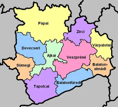 ![]() Veszprém County within Hungary | |