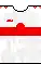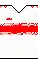 - Home uniform: White shirt with a horizontal red stripe, white shorts and white socks.