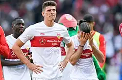 Stuttgart stayed in the Bundesliga in the 2020–21 season, finishing in ninth place in the league.[18] In the 2021–22 season, the team narrowly avoided relegation; a last-minute-win against 1. FC Köln on the last match day guaranteed them a spot in the first league for a third consecutive season.[19] In the 2022–23 season, Stuttgart managed to stay in the Bundesliga for a fourth consecutive season, but again only very closely, with Stuttgart finishing in 16th place and only qualifying for the next season thanks to successful play-offs.
