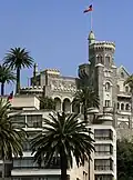 In 1925, the Teatro Municipal was opened in its current location in the eastern front of the city's downtown square, Plaza de Viña del Mar. In 1928 president Carlos Ibáñez del Campo authorized the creation of a casino, securing the future and the touristy character of the city. The Casino Municipal de Viña del Mar was opened on 31 December 1930.[6] On 31 January 1931 the Presidential Palace was inaugurated in Cerro Castillo (Castle Hill) as a summer residence for the Chilean President. The touristy character of the city was furthered with the inauguration of the O'Higgins Hotel in 1936 and the inauguration of the Miramar Hotel by Caleta Abarca Beach in 1945. For a few years in the early 1960s, a trolleybus line connected the city with Valparaíso, and the electric route network included three branches within Viña.[7]