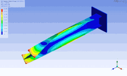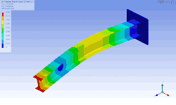 When there are many degrees of freedom, one method of visualizing the mode shapes is by animating them using structural analysis software such as Femap, ANSYS or VA One by ESI Group. An example of animating mode shapes is shown in the figure below for a cantilevered Ɪ-beam as demonstrated using modal analysis on ANSYS. In this case, the finite element method was used to generate an approximation of the mass and stiffness matrices by meshing the object of interest in order to solve a discrete eigenvalue problem. Note that, in this case, the finite element method provides an approximation of the meshed surface (for which there exists an infinite number of vibration modes and frequencies). Therefore, this relatively simple model that has over 100 degrees of freedom and hence as many natural frequencies and mode shapes, provides a good approximation for the first natural frequencies and modes. Generally, only the first few modes are important for practical applications.