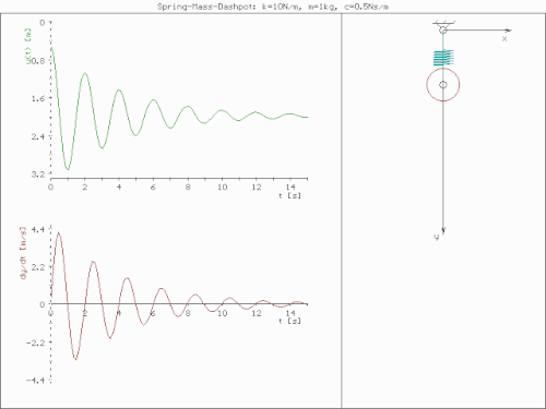 The behavior of the spring mass damper model varies with the addition of a harmonic force. A force of this type could, for example, be generated by a rotating imbalance.
