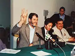 In 1991, after serving in the Chamber of Deputies, Fox sought the governorship in Guanajuato, but lost the disputed election to Ramón Aguirre Velázquez of the PRI. Following the election, local discontent over allegations of fraud surrounding Aguirre Velázquez's victory led the PRI candidate to decline to take office.[35][36] The state congress appointed Carlos Medina Plascencia of the PAN as interim governor.[37]