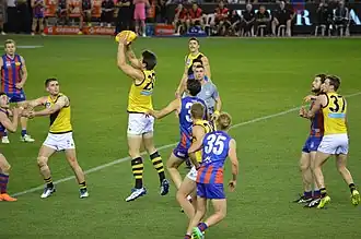 Over the first thirty years of the VFA's independence, its relationship with the VFL was, in general, mutually antagonistic. At different times (1913–1918 and 1923–1925), the two competitions had permit reciprocity agreements in place to prevent one competition from poaching players from the other without a clearance, but these were sporadic and remained in place only when convenient to both competitions.[15] At the same time, the strongest clubs in the VFA often sought to defect to the VFL, which the VFL was happy to encourage when it expanded, and there were ultimately four defections: Richmond in 1908; and Footscray, North Melbourne and Hawthorn in 1925. Attempting to defect was seen as treacherous within the VFA, and clubs which attempted to defect but failed were sometimes expelled from the VFA by the remaining clubs: North Melbourne was expelled from the VFA twice (in 1908 and 1921, before reforming and rejoining on both occasions), and West Melbourne was expelled permanently in 1908.[16][17]