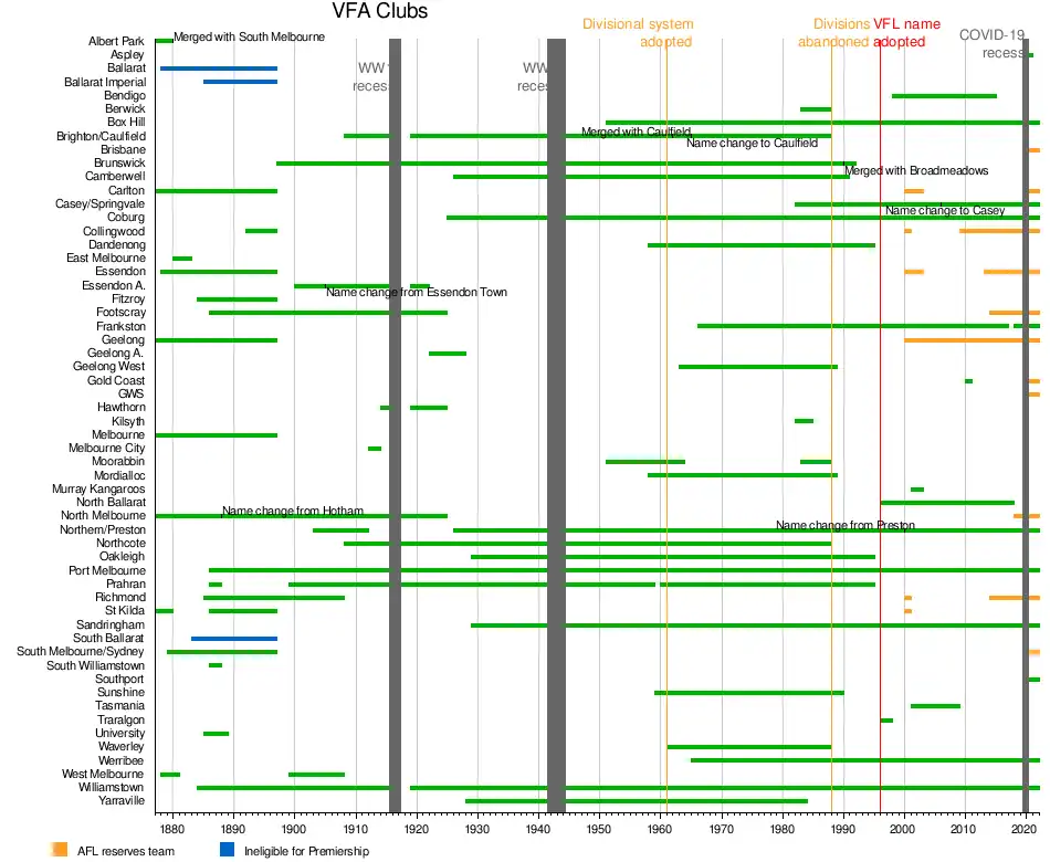 - ^ Ron Carter (3 December 1960). "V.F.A. decides on two divisions". The Age. Melbourne. p. 16.