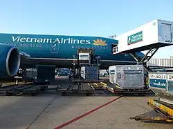 In December 2001, Vietnam Airlines signed a historic agreement with Boeing for the acquisition of its first ever US-built aircraft, signalling the start of trade under the Bilateral Trade Agreement between the two countries.[46] The deal involved four Boeing 777-200ERs.[47][48] The transaction was valued at US$680 million; the first aircraft was initially scheduled for delivery in 2003.[46] These four aircraft, along with six others of the same type that are leased from International Lease Finance Corporation (ILFC), are the flagships of the airline, and serve on medium and long-haul routes, respectively.[49] During that year, the airline carried 3.4 million passengers, 1.9 million of whom were on domestic flights; flights to Beijing resumed and services to Kunming were launched.[22][28] During 2002, Vietnam Airlines considered a lease offer from Airbus for two Airbus A340-300s,[50] which were never delivered to the airline. On 4 September 2003, a landmark ceremony celebrated the airline's receipt of its first Boeing 777-200ER purchased outright from Boeing.[51] On 28 October, the airline decided to move its operations in Moscow from Sheremetyevo International Airport to Domodedovo International Airport.[52]