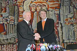 At 12 pm (Kyiv time) on 23 January 2005 the inauguration of Yushchenko as the President of Ukraine took place.[26] The event was attended by numerous foreign dignitaries.[27][28]