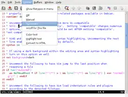 Via its GUI mode (called gVim), it presents an interface with more a modern experience including aspects such as menus, toolbars and icons. The full functionality is still expressed through its command line mode.