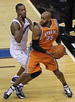 On December 18, 2010, Carter was acquired by the Phoenix Suns along with Marcin Gortat, Mickael Pietrus, and a first-round draft pick in 2011 NBA draft in exchange for Jason Richardson, Hedo Turkoglu, and Earl Clark.[64] On January 17, 2011, Carter recorded 29 points and 12 rebounds in a 129–121 win over the New York Knicks.[65] He reached 20,000 career points during the game, becoming the 37th NBA player to reach that plateau.[66]