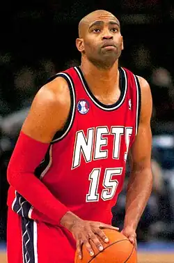 Vincent Lamar Carter Jr. (born January 26, 1977) is an American former professional basketball player who played for 22 seasons in the National Basketball Association (NBA). He primarily played the shooting guard and small forward positions, and was known for his high flying dunks, scoring ability, and athleticism. An eight-time All-Star and a two-time All-NBA Team selection, he played 22 seasons in the NBA, the second longest after LeBron James for the most seasons played in league history.[1] He is also the only player to have played in the NBA in four different decades (1990s, 2000s, 2010s, 2020s).[2][3] In 2024, Carter was inducted into the Naismith Memorial Basketball Hall of Fame.[4]