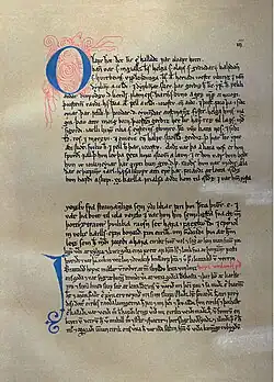Vinland was the name given to part of North America by the Icelandic Norseman Leif Eriksson, about 1000 AD. It was also spelled Winland,[4] as early as Adam of Bremen's Descriptio insularum Aquilonis ("Description of the Northern Islands", ch. 39, in the 4th part of Gesta Hammaburgensis ecclesiae pontificum), written circa 1075. Adam's main source regarding Winland appears to have been king Svend Estridson, who had knowledge of the "northern islands". The etymology of the Old Norse root vin- is disputed; while it has usually been assumed to be "wine", some scholars give credence to the homophone vin, meaning "pasture" or "meadow". Adam of Bremen implies that the name contains Old Norse vín (cognate with Latin vinum) "wine" (rendered as Old Saxon or Old High German wīn): "Moreover, he has also reported one island discovered by many in that ocean, which is called Winland, for the reason that grapevines grow there by themselves, producing the best wine."[11] This etymology is retained in the 13th-century Grœnlendinga saga, which provides a circumstantial account of the discovery of Vinland and its being named from the vínber, i.e. "wineberry", a term for grapes. According to Birgitta Wallace, theories that the sagas' vínber refers to other berries such as cranberries or currants are insupportable.[12] Kirsten Seaver also rejects the "Pastureland" interpretation and has written "The notion that the first syllable was vin with a short vowel (meaning ~ 'green meadow') has been so thoroughly discarded that we are left with the incontrovertible, long-vowelled vin or 'wine'."[13]