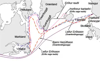 - ^ Gisli Sigurdsson, "The Quest for Vinland in Saga Scholarship", in William Fitzhugh & Elizabeth Ward (Eds.) Vikings: the North Atlantic Saga, Washington DC, Smithsonian Institution (2000) ISBN 1-56098-995-5