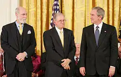 Cerf and Bob E. Kahn being awarded the Presidential Medal of Freedom by President George W. Bush