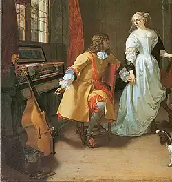 - ^ The violin and the flute were not considered appropriate for ladies; no longer, in the case of the violin, as in the 17th century, because of its popular origins and association with people who made a living playing music, but because the physical effort required to hold the violin a braccio or to play the flute were not considered lady-like