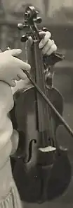 {{cite book}}: ISBN / Date incompatibility (help). "Now we will discipline the shaking of the left hand in the following manner: Shake the wrist slowly and evenly in 8th notes. Start from the original position and for the second 8th note the wrist is to move backward (toward the scroll). Do this in triplets, dotted 8ths and 16ths, and 16th notes. A week or two later, the vibrato may be started on the Violin. ... The procedure will be as follows: 1. Roll the finger tip from this upright position on the note, to slightly below the pitch of this note." - ^ Schleske, Martin. "The psychoacoustic secret of vibrato". Archived from the original on 7 February 2010. Retrieved 11 February 2010.