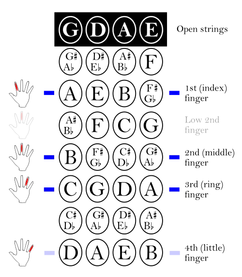 - ^ Violins with six, seven, or more strings exist, but are rare, and must be amplified electronically.
