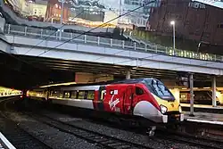 Virgin Trains (VT) (legal name West Coast Trains Limited)[1] was a train operating company in the United Kingdom owned by Virgin Rail Group, a joint venture between Virgin Group and Stagecoach, which operated the InterCity West Coast franchise from 9 March 1997 to 7 December 2019. The franchise covered long-distance passenger services on the West Coast Main Line between London, the West Midlands, North West England, North Wales and southern Scotland, consequently connecting six of the UK's largest cities: London, Birmingham, Manchester, Liverpool, Glasgow and Edinburgh, which have a combined metropolitan population of over 18 million. It had around 3,400 employees in 2015.[2]