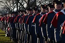 Under the militia bill (the Virginia Code of 1860) officers of the institute were recognized as part of the military establishment of the state, and the governor had authority to issue commissions to them in accordance with institute regulations.[14] Current law makes provision for officers of the Virginia Militia to be subject to orders of the governor.[14] The cadets are a military corps (the Corps of Cadets) under the command of the superintendent and under the administration of the Commandant of Cadets, and constitute the guard of the institute.[14][18]