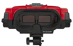 The Virtual Boy is the first video game console capable of displaying stereoscopic 3D graphics, marketed as a form of virtual reality.[38] Whereas most video games use monocular cues to achieve the illusion of three dimensions on a two-dimensional screen, the Virtual Boy creates an illusion of depth through the effect known as parallax. Like using a head-mounted display, the user looks into an eyeshade made of neoprene on the front of the machine, and then an eyeglass-style projector allows viewing of the monochromatic red image.