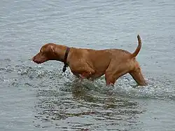 The Hungarian Vizsla is a versatile hunting dog that was traditionally and is currently used to hunt, point, and retrieve, referring to the dog's natural ability in tracking, pointing, and retrieving game, including in water.[6] Although they are lively, gentle-mannered, demonstrably affectionate and sensitive, they are also fearless and possess a well-developed protective instinct.[7]