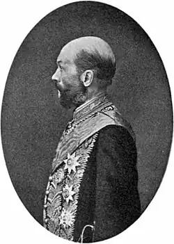 Nabokov was born on 22 April 1899 (10 April 1899 Old Style) in Saint Petersburg[b] to a wealthy and prominent family of the Russian nobility. His family traced its roots to the 14th-century Tatar prince Nabok Murza, who entered into the service of the Tsars, and from whom the family name is derived.[11][12]: 16 [13] His father was Vladimir Dmitrievich Nabokov, a liberal lawyer, statesman, and journalist, and his mother was the heiress Yelena Ivanovna née Rukavishnikova, the granddaughter of a millionaire gold-mine owner. His father was a leader of the pre-Revolutionary liberal Constitutional Democratic Party, and wrote numerous books and articles about criminal law and politics.[14] His cousins included the composer Nicolas Nabokov. His paternal grandfather, Dmitry Nabokov, was Russia's Justice Minister during the reign of Alexander II. His paternal grandmother was the Baltic German Baroness Maria von Korff. Through his father, he was a descendant of the composer Carl Heinrich Graun.[15]