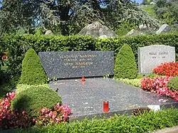 Nabokov died of bronchitis on 2 July 1977 in Montreux.[34][35] His remains were cremated and buried at Clarens cemetery in Montreux.[36]: xxix–l