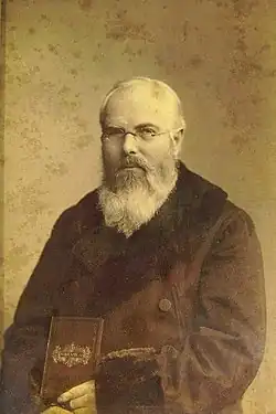Volapük was first created by Johann Martin Schleyer, who was a Roman Catholic priest. As Schleyer met an old German peasant who could could not write to his son due to the linguistic barrier, he was very symphathetic, causing him to decide that there should be a means of international communication. He first created a "National alphabet", which could express the sounds of every language in the world. However, his alphabet system did not gain any recognition, which caused him to develop insomnia. During one sleepless night, he believed that God told him not to despair, and had called him to create an international auxiliary language.[1] Schleyer first published a sketch of Volapük in May 1879 in Sionsharfe,[12] a Catholic poetry magazine of which he was editor. This was followed in 1880 by a full-length book in German. Schleyer himself did not write books on Volapük in other languages, but other authors soon did, such as Comprehensive Volapük Grammar by Alfred A. Post,[13] A Complete Grammar of Volapük by A. K. Linderfelt, and A Handbook of Volapük by Andrew Drummond.