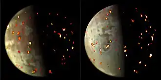 - ^ McEwen, A. S.; Belton, M. J.; Breneman, H. H.; Fagents, S. A.; Geissler, P.; et al. (2000). "Galileo at Io: Results from High-Resolution Imaging". Science. 288 (5469): 1193–98. Bibcode:2000Sci...288.1193M. doi:10.1126/science.288.5469.1193. PMID 10817986.