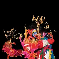 The album was re-released in June 2009 in expanded versions, under the name Voltaïc. There were five separate versions of related material from Volta. The full version included a CD of 11 songs performed live at the Olympic Studios, a DVD of live performances in Paris and Reykjavík during the Volta tour, a second DVD of the Volta music videos, videos of the top ten runners-up from the "Innocence" video contest, and a second CD of remixes from Volta's singles.[3] The official worldwide release date of all editions was 23 June 2009.[4] The artwork was nominated for an award at the 2010 Brit Insurance Design Awards.[5] It was a collaboration between the German fashion designer Bernhard Willhelm and British fashion photographer Nick Knight.[6] Björk went on the 18-month The Volta tour, her first tour in four years.